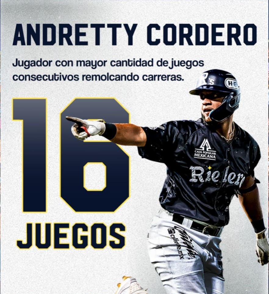 La temporada 2025 de la Liga Mexicana de Beisbol quedó marcada por la actuación de Andretty Cordero, quien estableció un récord de 16 juegos consecutivos produciendo carrera y se convirtió en el eje ofensivo de los Rieleros de Aguascalientes. Su consistencia al bat, sostenida noche tras noche, lo colocó como una figura determinante en el desarrollo de la campaña hidrocálida.