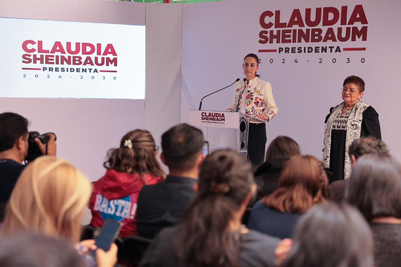 ’’Estamos regresando a lo que fue el lema de la Revolución Mexicana: ‘Sufragio efectivo, no reelección´, en nuestra historia y que en algún momento se faltó a esto y que la Doctora decide regresar y retomar la esencia de la Constitución del ´17. Y justicia para las mujeres y garantizar a las familias mexicanas que los niños, las niñas de los niveles básicos, preescolar, primaria y secundaria tengan no solamente que el Estado garantice una planta de maestros, maestras, una infraestructura, sino las condiciones económicas, sociales para que pueda ejercer el derecho a la educación’’, comentó sobre las reformas constitucionales propuestas.
