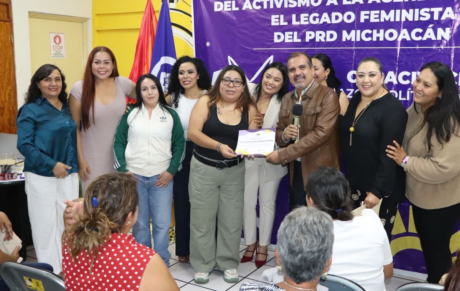 Durante el taller, se contó con la presencia de integrantes del Comité Ejecutivo Estatal, mujeres líderes del partido en el estado, así como funcionarias públicas de diversos municipios, lo que reafirma el compromiso del PRD Michoacán con la formación, la inclusión y el fortalecimiento de las mujeres en la vida política.