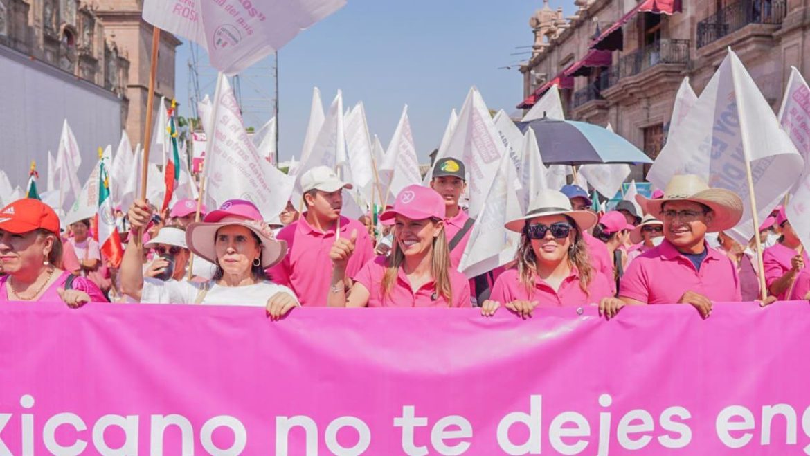 La marcha, conocida como la “Marea Rosa”, avanzó por la avenida Madero, desde la Catedral hasta la plaza en honor del Generalísimo Morelos. Entre los cánticos y consignas, los participantes hicieron un llamado al respeto de la Constitución, los derechos humanos, la democracia, el voto ciudadano y la división de poderes.