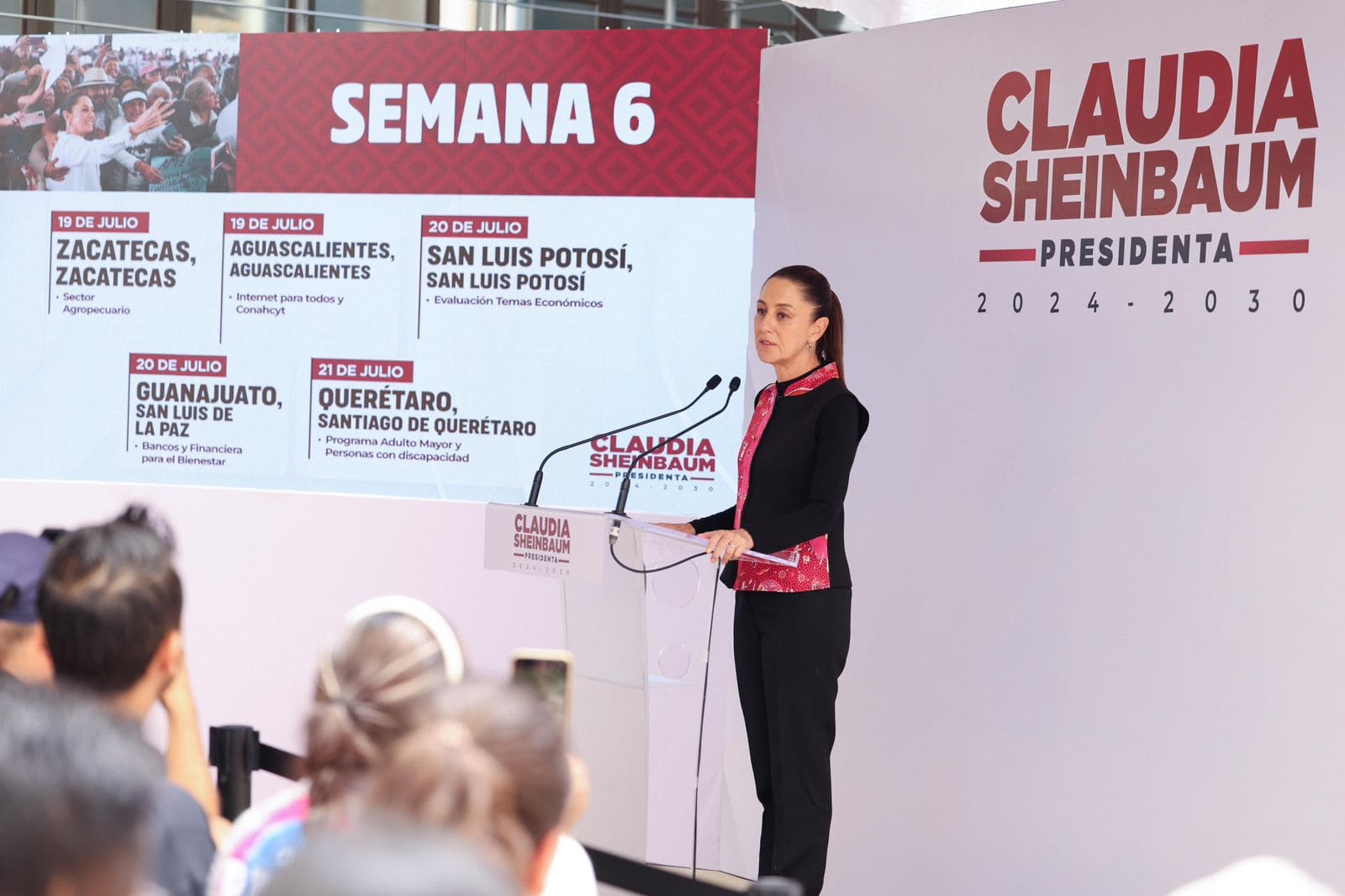 “Ya estamos trabajando sobre el día 1o., vamos a ir al Congreso, a la Banda Presidencial; después, vamos a recibir a los mandatarios de todo el mundo en Palacio Nacional; y después, vamos a tener un mitin afuera de Palacio para informar de nuestro programa, de nuestro proyecto para los siguientes seis años”, anunció.