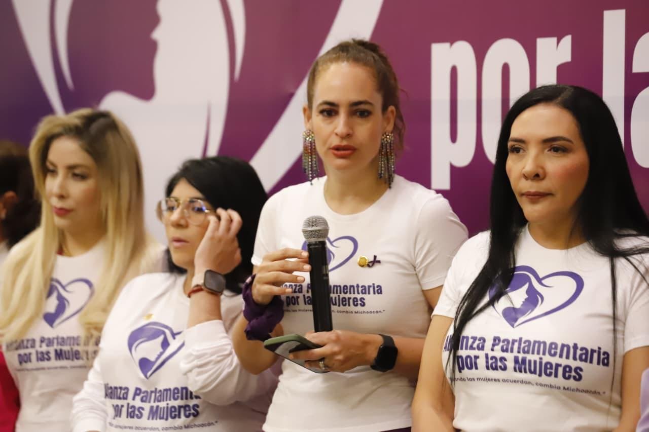 En rueda de prensa la diputadas Vanessa Caratachea, Adriana Campos, Sandra Arreola, Melba Albavera, Sandra Garibay, Belinda Hurtado, Xóchitl Ruíz, Diana Espinoza, Grecia Aguilar, Jaqueline Avilés y Nalleli Pedraza, precisaron que dicha alianza busca sumar voluntades y construir coincidencias para fortalecer una agenda legislativa que impulse mayores derechos, protección y oportunidades para las mujeres michoacanas.