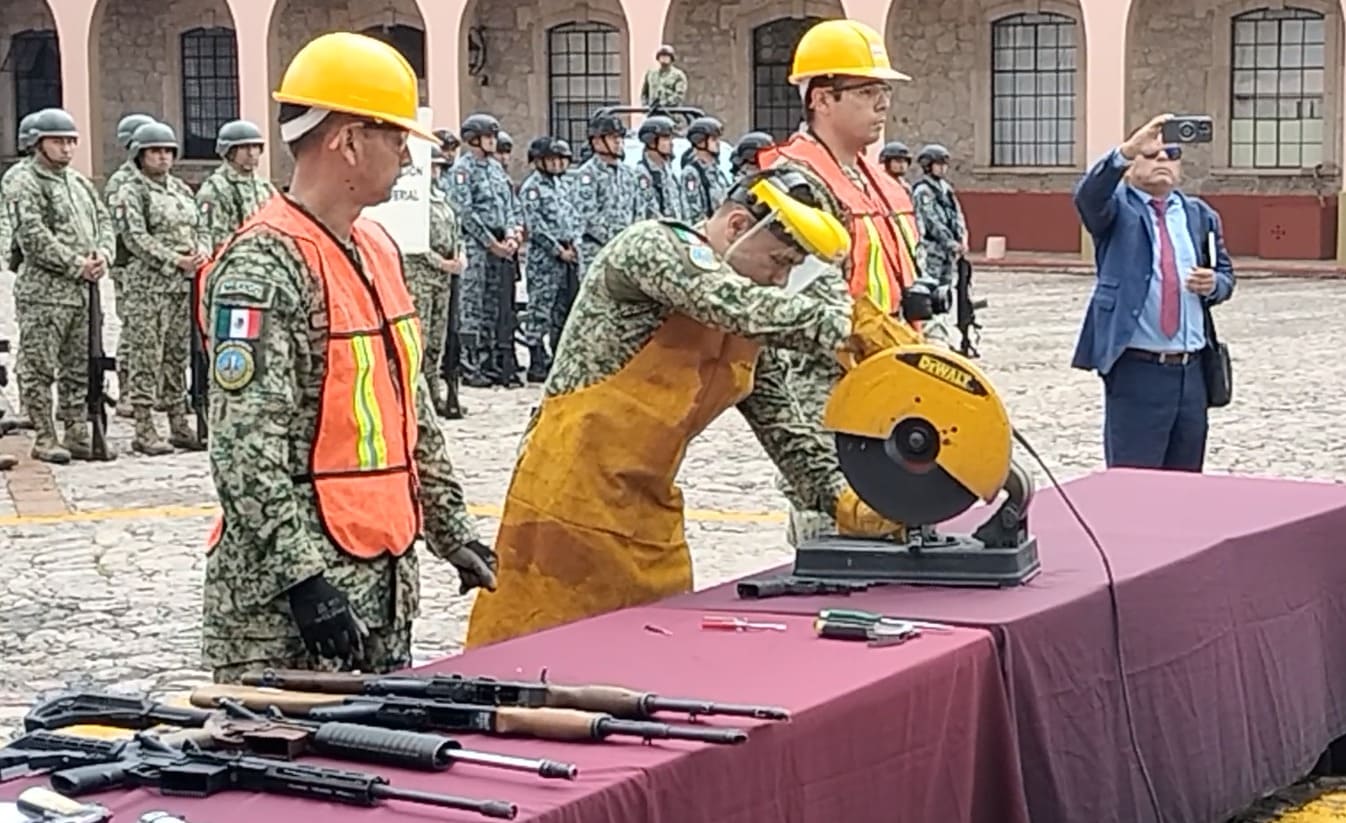 La Secretaría de la Defensa Nacional (Sedena) llevó a cabo este día la destrucción de más de 400 armas de fuego y más de 26 mil cartuchos en un acto encabezado por el General Juan Bravo Velázquez, comandante de la XXI Zona Militar, quien subrayó el carácter simbólico de esta acción en el contexto de los desafíos de seguridad que enfrenta Michoacán.