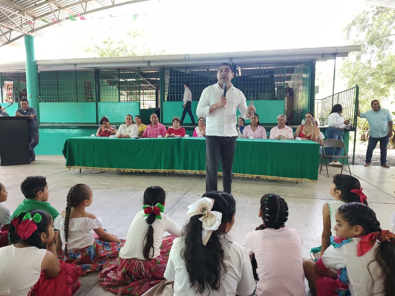 Durante su intervención, el edil municipal recalcó el compromiso de su administración con la educación, a pesar de las limitaciones de competencia. «Aunque no le compete al municipio este tipo de obras y las escuelas son Federales, se tiene un rezago de años, y alguien tiene que hacer algo», afirmó. «Por eso estamos aquí para dar arranque al Techo elevado y también a la cancha de usos múltiples que quedará bajo el techo, ya que el piso firme que tiene está seriamente deteriorado».