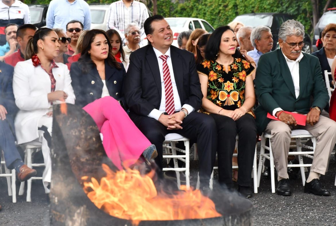 Memo Valencia, en compañía de la secretaría general del partido, Xóchitl Ruiz González, mencionó que la bandera nacional incinerada vio pasar generaciones enteras de priistas y no podía ser de otra forma su cambio, en el marco de lo que dicta la Ley sobre el Escudo, la Bandera y el Himno Nacional.