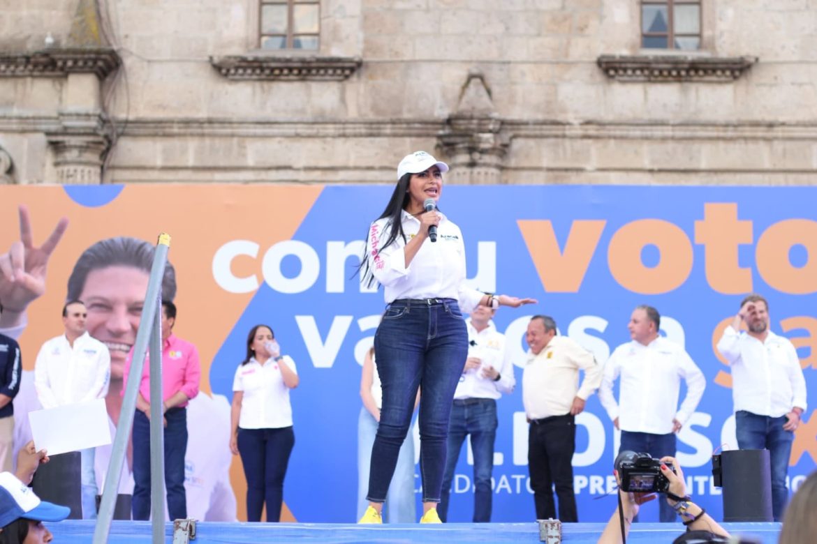 “Desde Morelia y Michoacán le vamos a refrendar nuestro cariño a Xóchitl Gálvez, que es la mujer que va a fincar un nuevo rumbo para el país desde la presidencia de la República, ella es la que estará velando por todas y todos”.