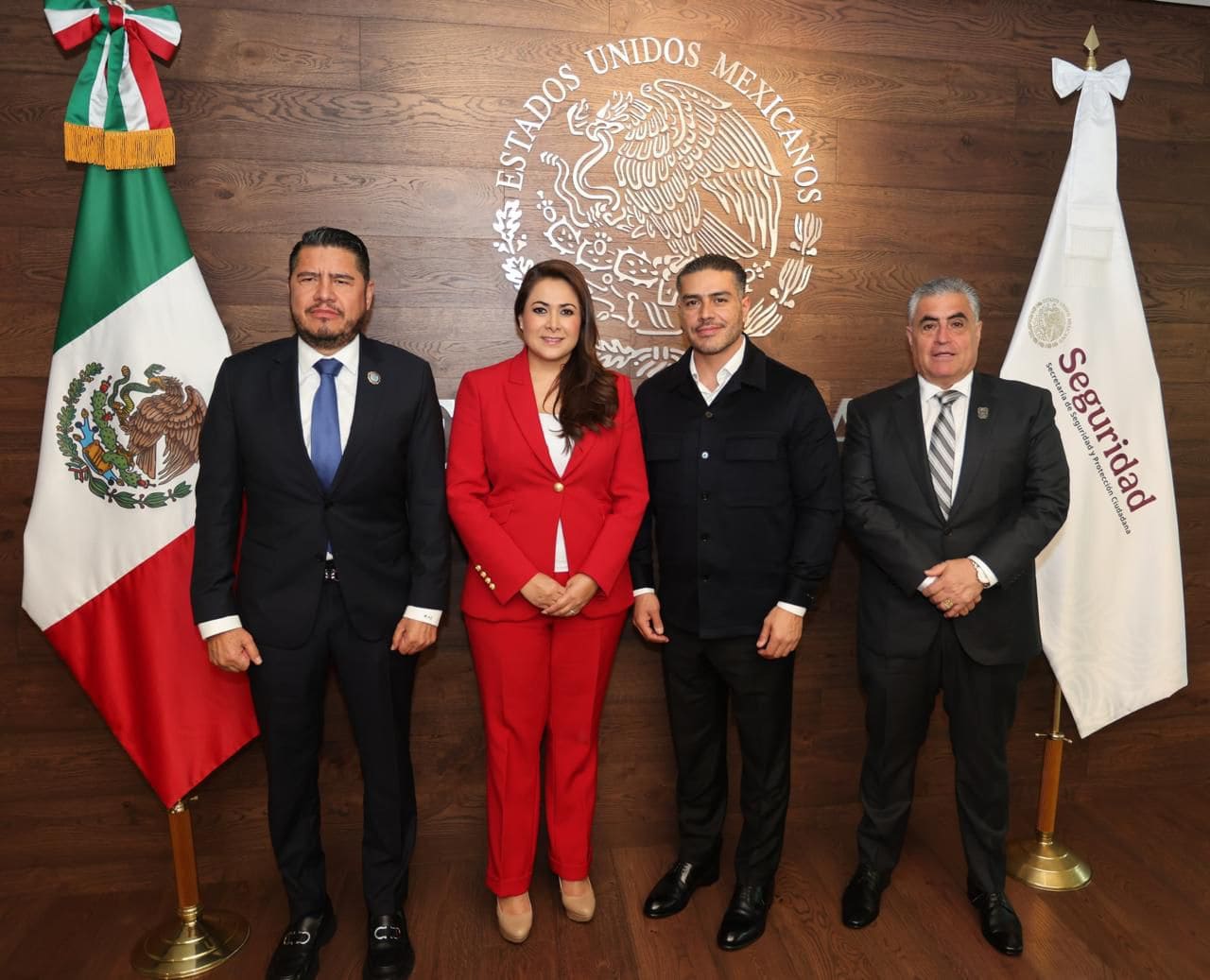 El Fiscal General del Estado, Manuel Alonso García; la gobernadora de Aguascalientes, Tere Jiménez Esquivel; y el secretario de Seguridad Pública del Estado sostuvieron una reunión de trabajo con el titular de la Secretaría de Seguridad y Protección Ciudadana (SSPC), Omar García Harfuch, con el objetivo de revisar y fortalecer las acciones conjuntas en materia de seguridad y justicia.