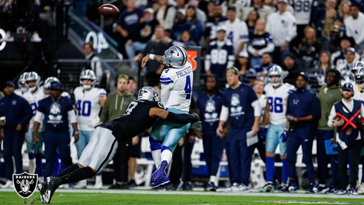 Prescott cerró con 268 yardas, cuatro touchdowns y un índice de pasador de 138.6. La defensa de los Raiders permitió más de 30 puntos por quinta vez en la temporada. Smith completó 27 de 42 pases para 238 yardas, fue capturado cuatro veces y lideró el equipo en yardas terrestres con apenas 14. Jeanty, su corredor de primera ronda, sumó solo siete yardas en seis acarreos.