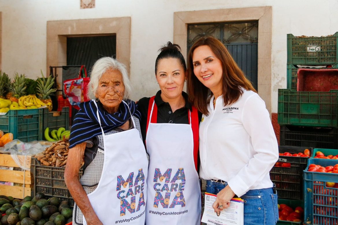 La candidata a Diputada Local por el Distrito 15 de Pátzcuaro, Macarena Chávez, continúa su campaña a ras de tierra, visitando el mercado y las colonias del municipio, manteniendo una cercanía directa con la población.