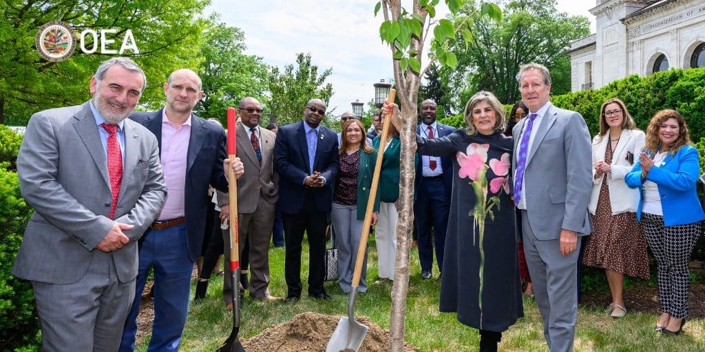 La Organización de los Estados Americanos (OEA) llevó a cabo la plantación de dos cerezos frente a su sede en Washington, DC, como parte de las actividades conmemorativas del Día de la Tierra. La ceremonia reunió a autoridades de la Secretaría General y representantes de los Estados Miembros, quienes destacaron la necesidad de fortalecer las acciones regionales en materia ambiental.