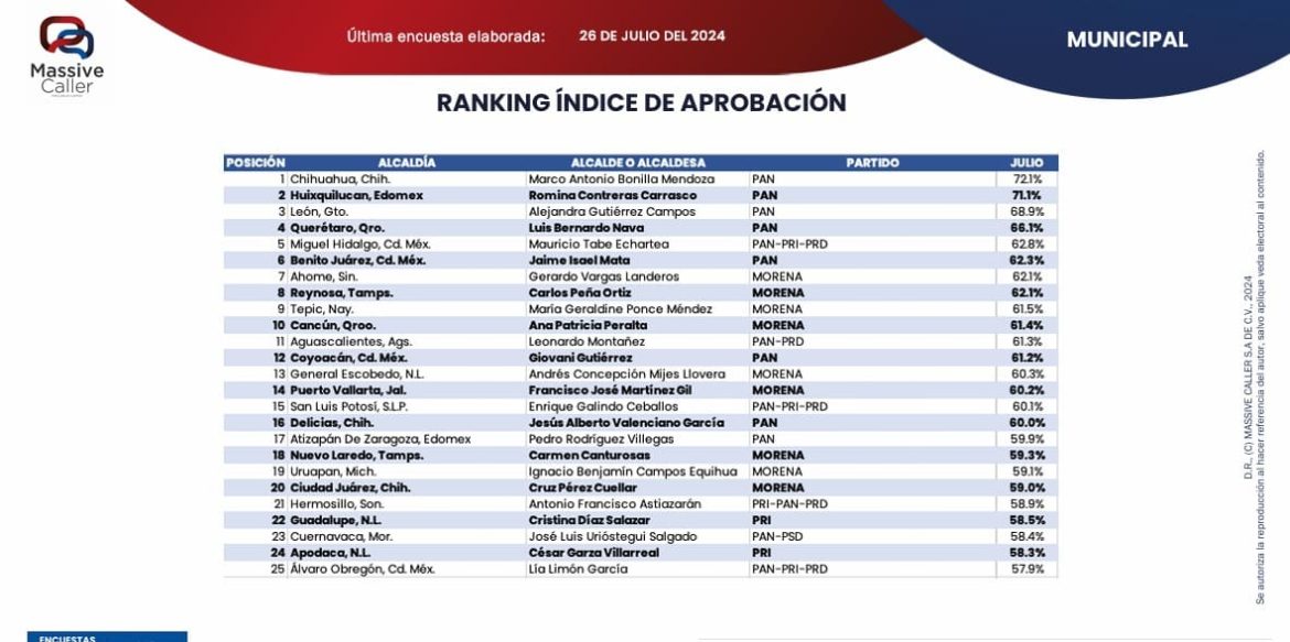 En un reciente informe publicado por Massive Caller, se presentaron los índices de aprobación y percepción de confianza de los alcaldes en diversas localidades de Michoacán, destacándose notablemente los resultados de Morelia y Uruapan.