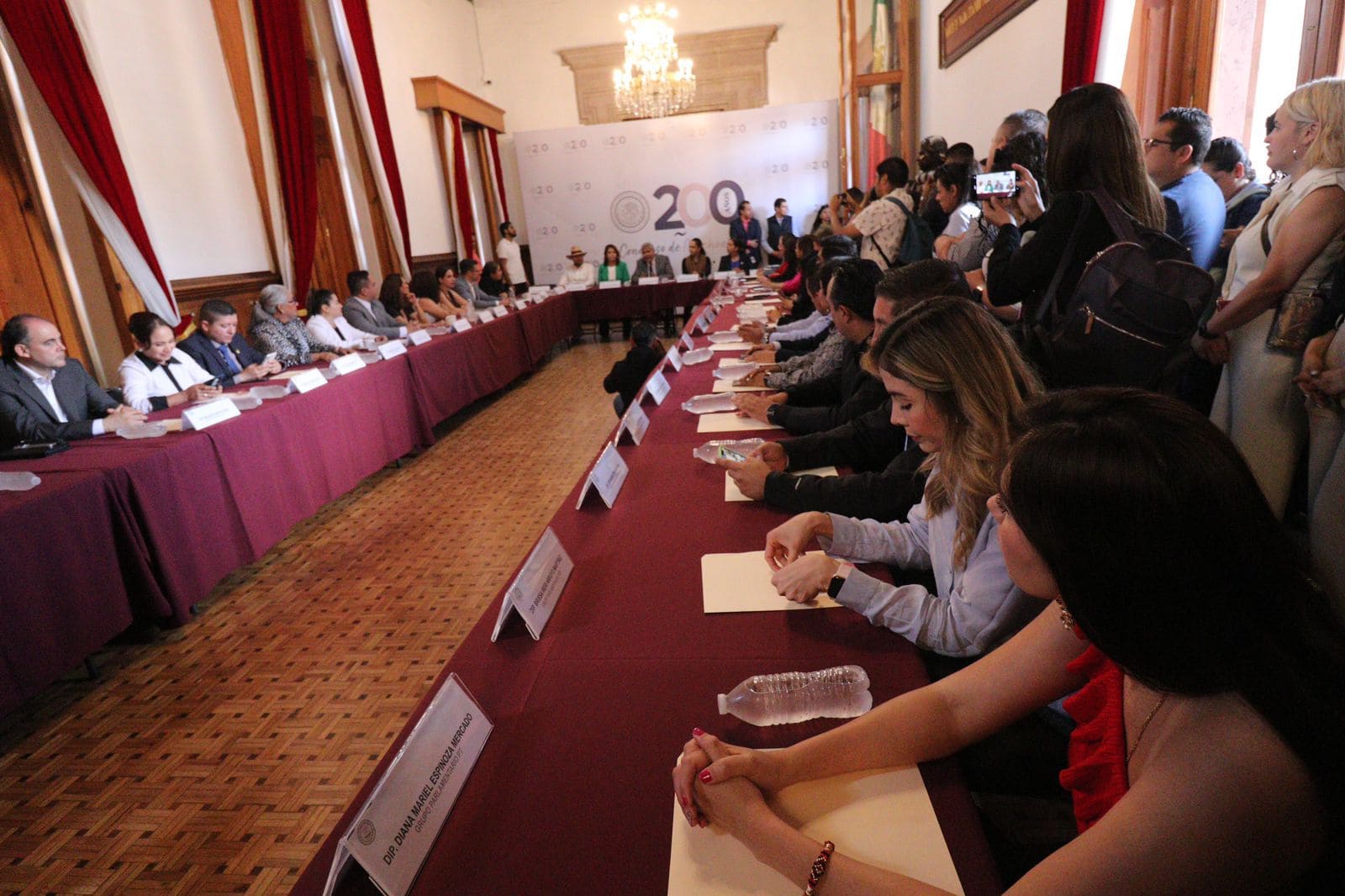 El presidente de la Mesa Directiva del Congreso del Estado, Juan Antonio Magaña de la Mora, acompañado de la presidenta de la Junta de Coordinación Política (JUCOPO), Fabiola Alanís Sámano, las y los coordinadores parlamentarios y las y los diputados integrantes de la 76 Legislatura, fue quien de manera formal instaló todas y cada una de las comisiones y de los comités.