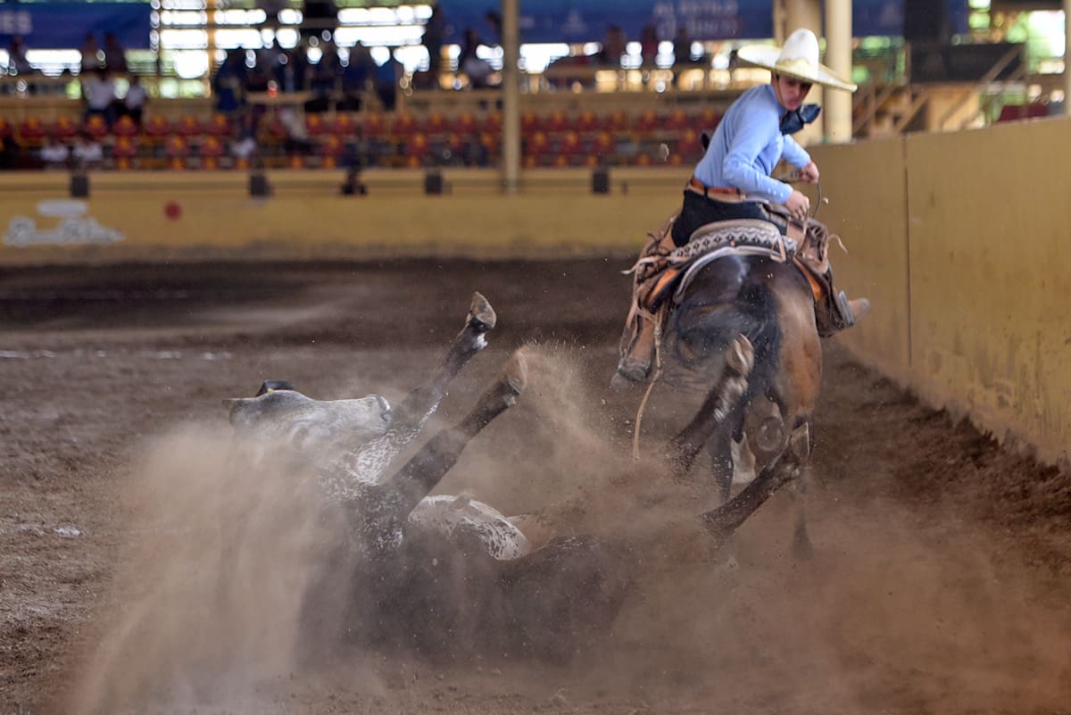 Extraordinaria jineteada de yegua pegó Santiago Navarro Franco, para cobrar 23 buenos, pero a la hora buena solo cayeron dos manganas, una a pie de 26 de Gael Garrido Gutiérrez y otra a caballo de 32 de Daniel Hernández Cuevas, acabando su presentación con los 24 del paso de la muerte de Leonardo Valdivia Franco, para sellar 308 puntos.