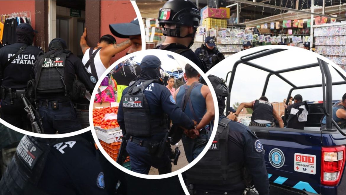 El despliegue incluyó patrullajes, recorridos a pie y filtros de revisión, con el objetivo de supervisar el desarrollo cotidiano de las actividades en este centro de abasto, que es uno de los principales puntos de distribución alimentaria en la entidad.