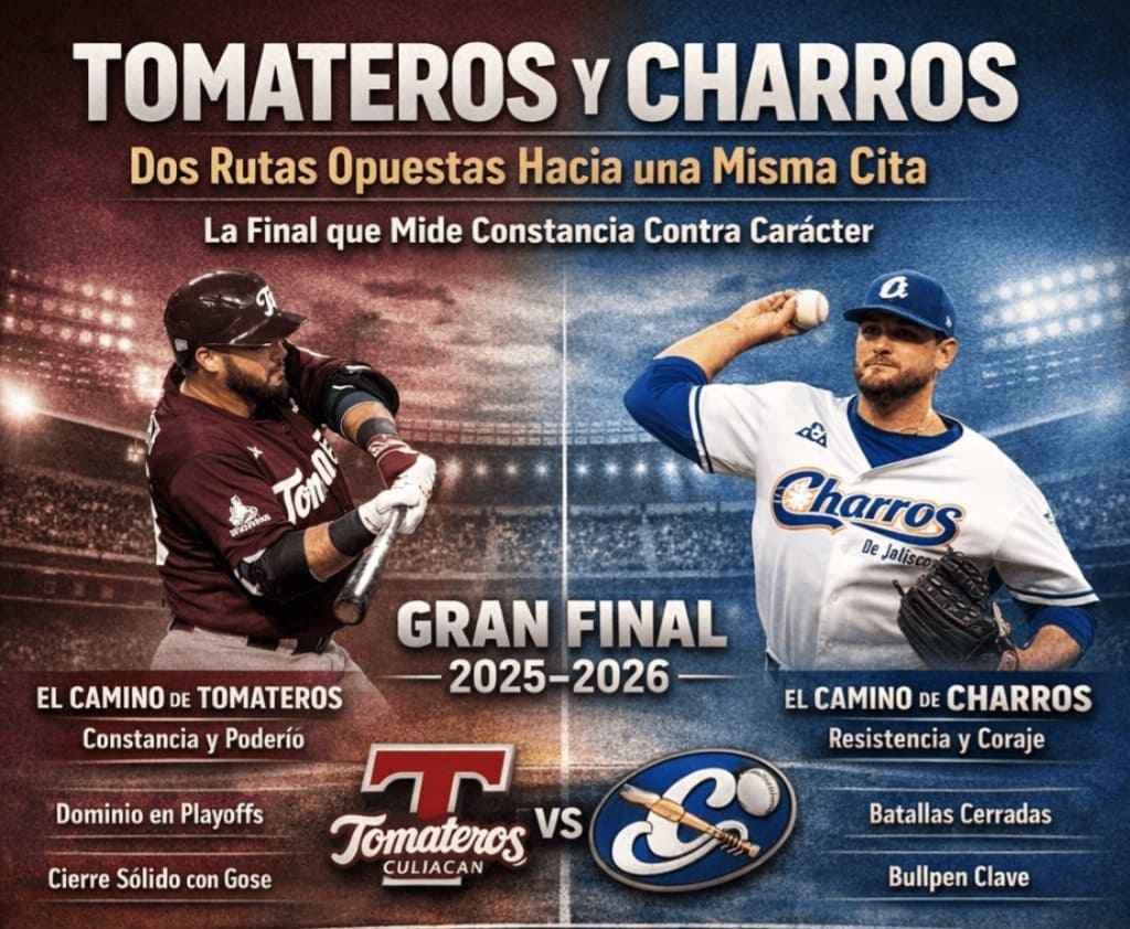 La Final de la temporada 2025-2026 no enfrenta únicamente a dos novenas históricas; confronta dos maneras distintas de llegar al último escalón. Tomateros de Culiacán y Charros de Jalisco arribaron al duelo definitivo tras recorrer caminos contrastantes, pero igualmente exigentes, en una postemporada que fue afinando sus identidades hasta dejarlas listas para el choque final.